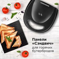 | Дополнительная информация | панель для сэндвичей на 4 порции, панель для вафель на 2 порции; размер одной панели: 250 × 132 × 9 мм; комплектация: мультипекарь, книга рецептов, руководство по эксплуатации, сервисная книжка, комплект съемных панелей для приготовления "Сэндвич" RAMB-01, комплект съемных панелей для приготовления "Венские вафли" RAMB-02, комплект съемных панелей для приготовления "Гриль" RAMB-03, съемный поддон для сбора масла/жира; количество режимов: 1; длина шнура: 0.8 м |