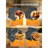 | Дополнительная информация | Универсальный мультипекарь, электрическая вафельница со сменными панелями гриль |
