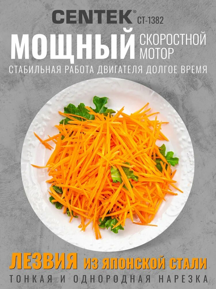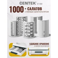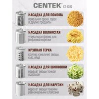 Мультирезка — овощерезка электрическая Centek CT-1382 лезвия из Японской стали, 5 насадок + толкатель, мощный двигатель 300 Вт, прорезиненные ножки, белая: сравнение цен, характеристики, фото, актуальное наличие и цены.