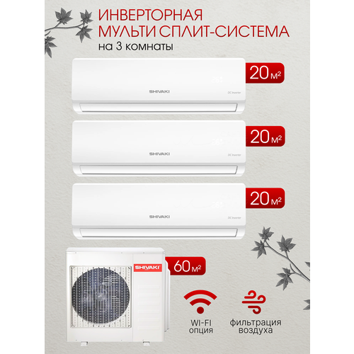 Мультисплит-система Shivaki 24 DC Prestige, мощность 7+7+7 BTU, А класс, инверторный кондиционер на 60 м², на 3 комнаты: сравнение цен, характеристики, фото, актуальное наличие и цены.
