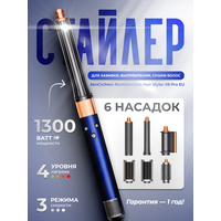 Длинная узкая цилиндрическая насадка, Длинная широкая цилиндрическая насадка, Жёсткая щётка для выпрямления, Круглая щётка для объёма, Мягкая щётка для выпрямления, Насадка для сушки