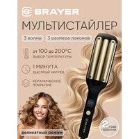 Купить Мультистайлер, тройная плойка для волос BRAYER BR3307, 200°C, автоотключение, черный/золотистый с доставкой по всей России.