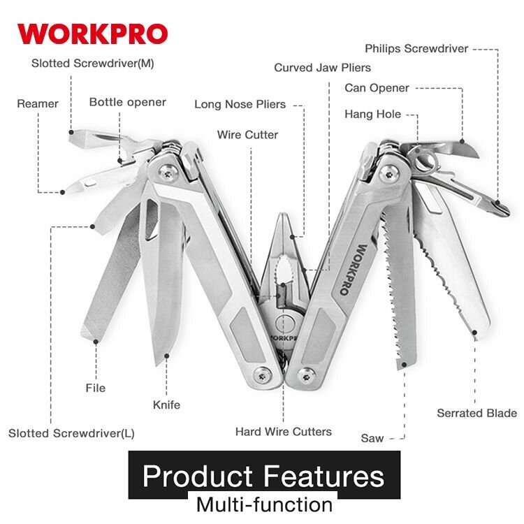 Купить Мультитул 16 в 1, 178мм WORKPRO с доставкой по всей России. Мультитул 16 в 1, 178мм WORKPRO: сравнение цен, характеристики, фото, актуальное наличие и цены.