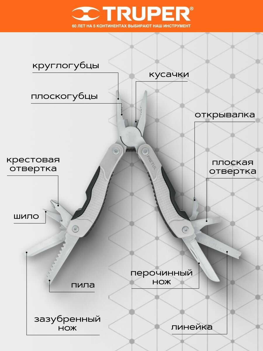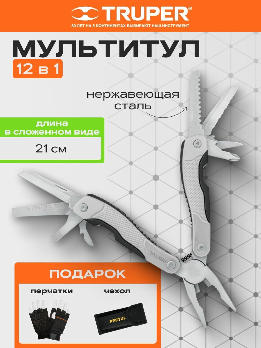 Купить Комплект для активного отдыха и работы — мультитул туристический Pretul и перчатки без пальцев Truper с доставкой по всей России.