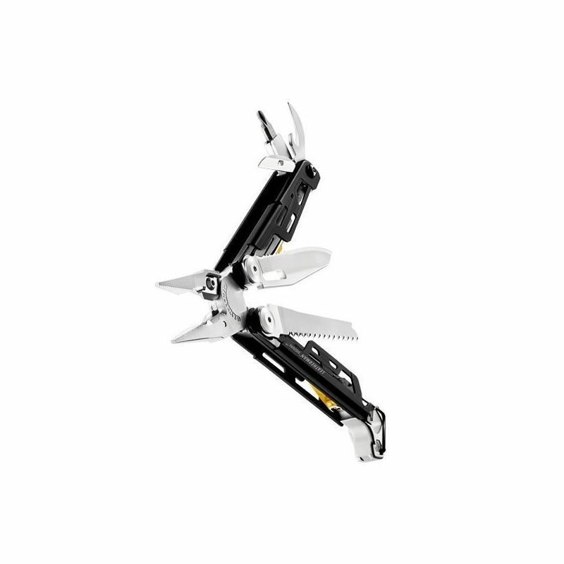 На этом функциональность мультитула не заканчивается. Реально у человека в руке 19 инструментов: молоток, сменные кусачки особой прочности из стали 154CM, универсальный нож (одна половина прямая, а вот вторая получила волнообразную заточку). Острый стальной клинок 420HC с выемкой для удобного открывания одним пальцем. Главный инструмент – универсальный пассатижи, они же кусачки и острогубцы, есть держатели для бит, алмазный надфиль, набор отверток и пила.