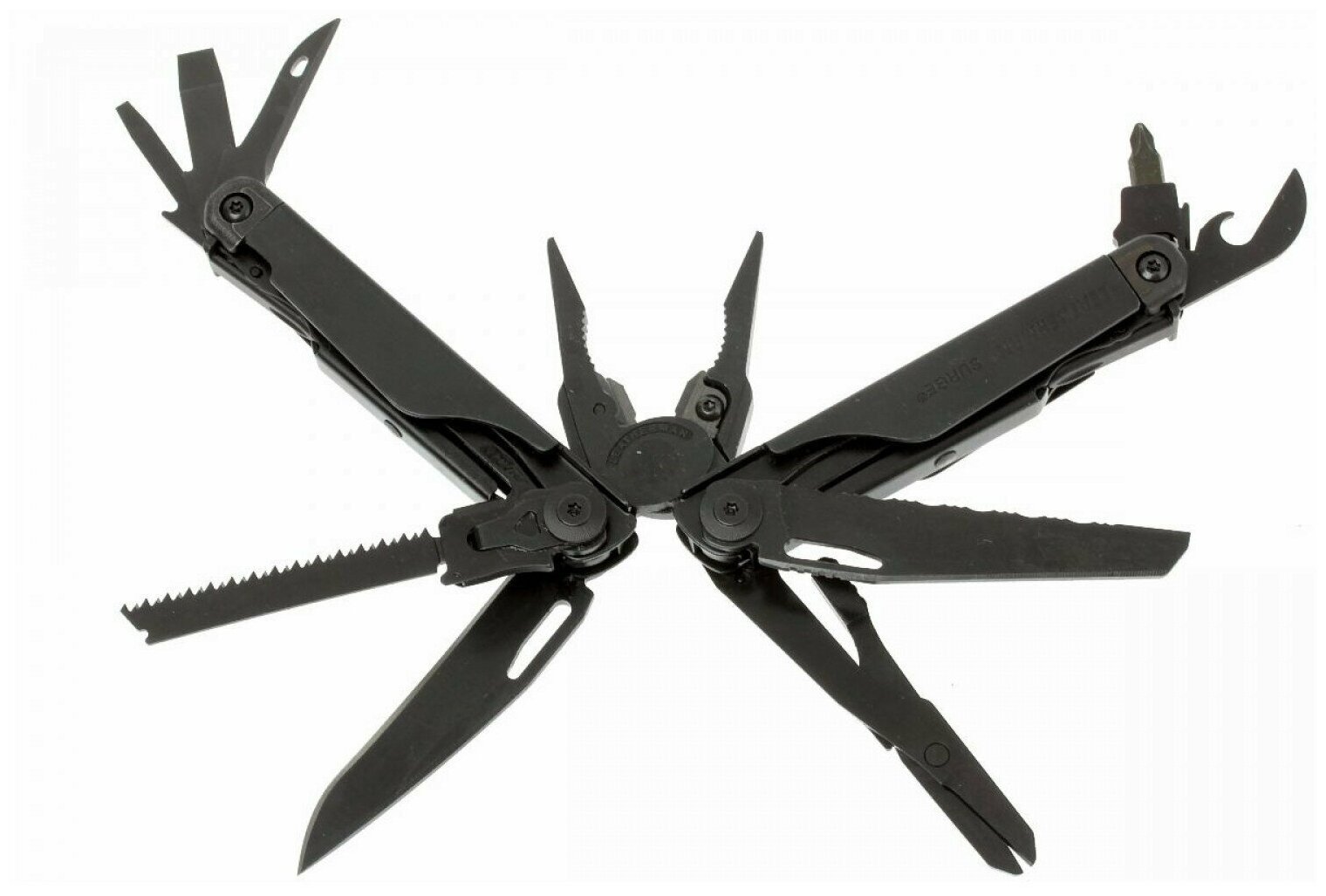 | Инструменты (функции) | консервный нож, кусачки, линейка, напильник, нож, ножницы, острогубцы, отвертка, открывалка для бутылок, пассатижи, пила, плоскогубцы, сменные биты, шило / кернер |