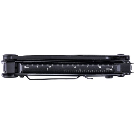 - 16 инструментов (острогубцы, плоскогубцы, обычные кусачки, кусачки для жесткой проволоки, кусачки для толстой проволоки, серрейторная пила, нож с прямой заточкой, отвертка Phillips, плоская отвертка, инструмент для зачистки проводов, инструмент для обрезки лески, ножницы, консервный нож, открывалка для бутылок, стеклобой, линейка);