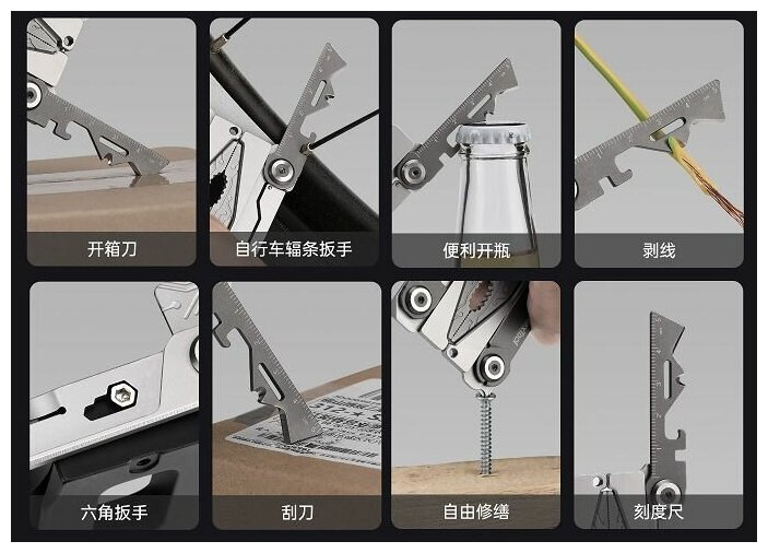 | Инструменты (функции) | кусачки, линейка, нож, отвертка, открывалка для бутылок, плоскогубцы |