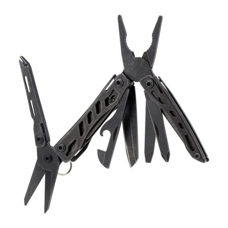 Многофункциональный компактный мультитул из нержавеющей стали совмещает в себе 10 функций. Объединяет в себе множество инструментов, среди которых: большой нож, нож для снятия изоляции, отвёртка, нож для верёвок, открывашку, пассатижи, стеклобой.