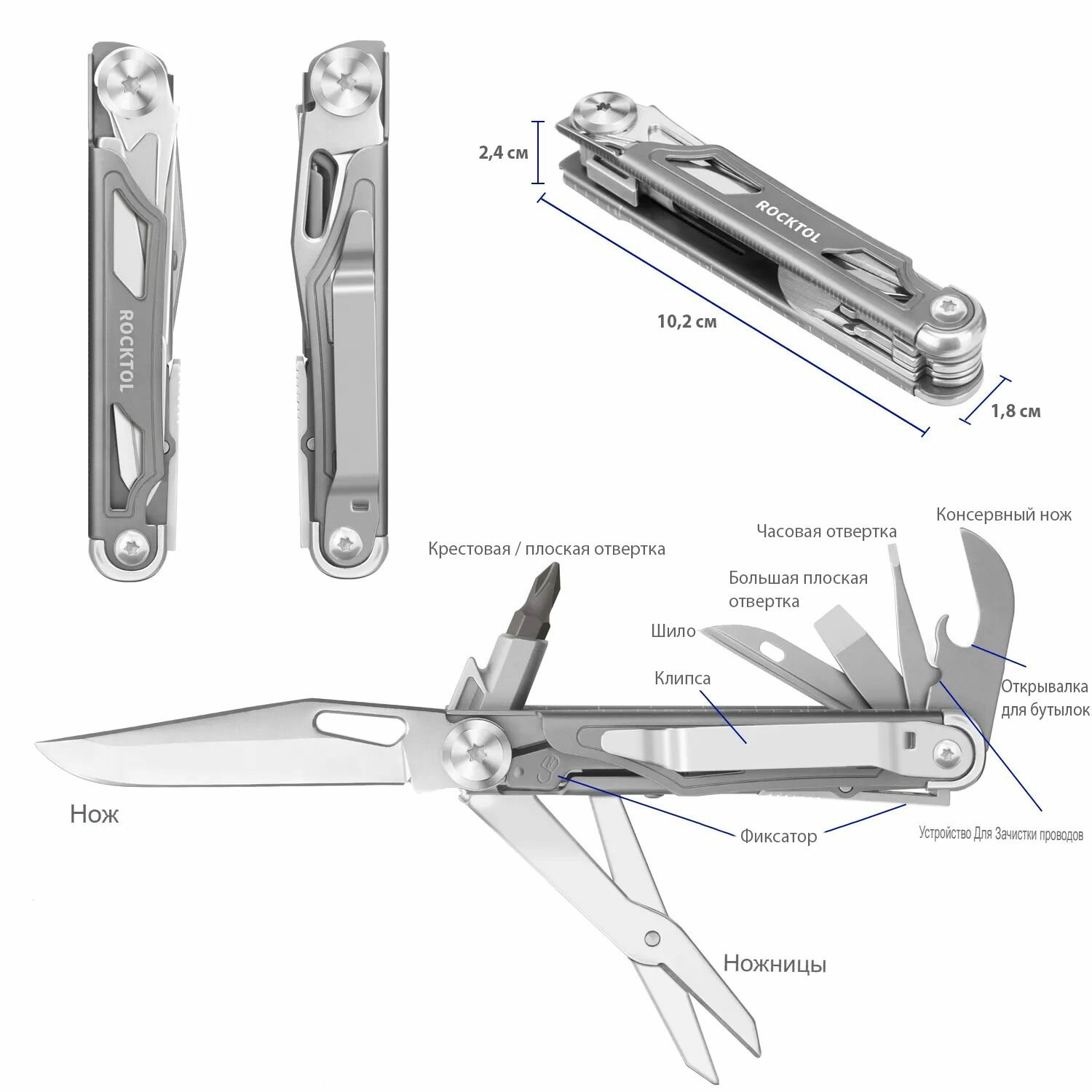 Мультитул — нож Rocktol 12 в 1 с титановыми ручками, серый, ST02: сравнение цен, характеристики, фото, актуальное наличие и цены.
