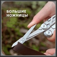 Этот сверхпрочный мультитул создан для выполнения более сложных работ профессионалами и любителями активного отдыха; В комплект входят сменные кусачки для проволоки, пила по дереву со сменой лезвий, прямые и зазубренные ножи, а также очень большие пружинящие ножницы; Все эти основные инструменты доступны в сложенном положении, обеспечивая быстрый доступ к наиболее часто используемым инструментам.