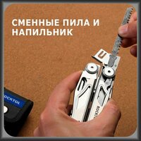 Прочный многофункциональный инструмент изготовлен из сверхпрочной нержавеющей стали 3Cr13, которая эффективно предотвращает коррозию и гарантирует длительный срок службы; Контурная рукоятка с 3D-обработкой и углублениями обеспечивает удобный и надежный захват; Это универсальный набор инструментов для любой работы, будь то дома, на производстве или на улице.