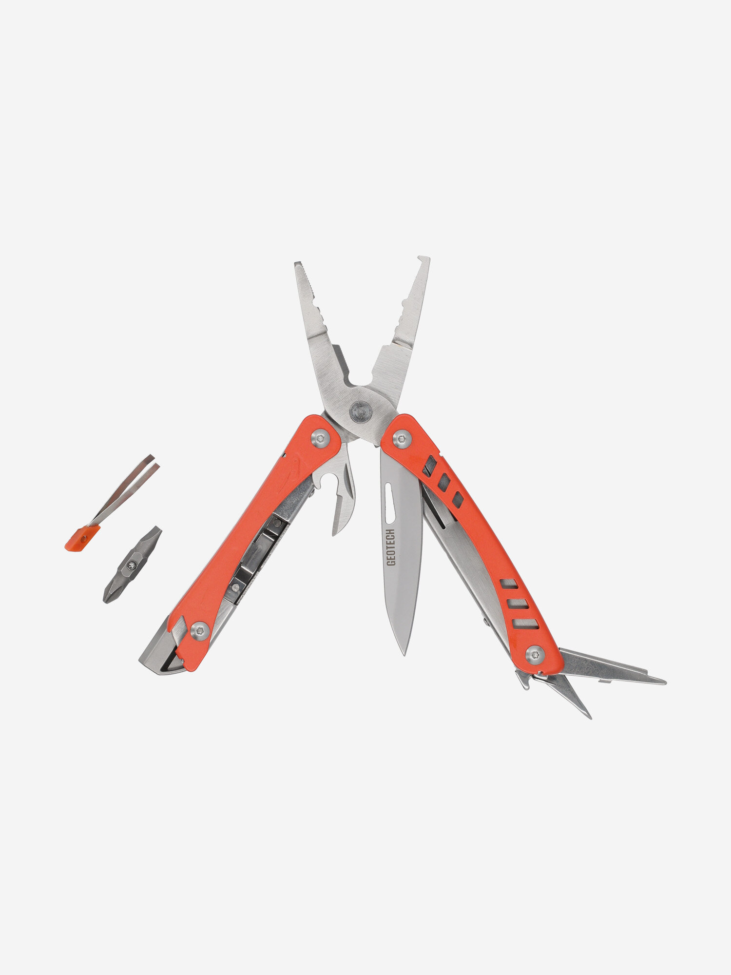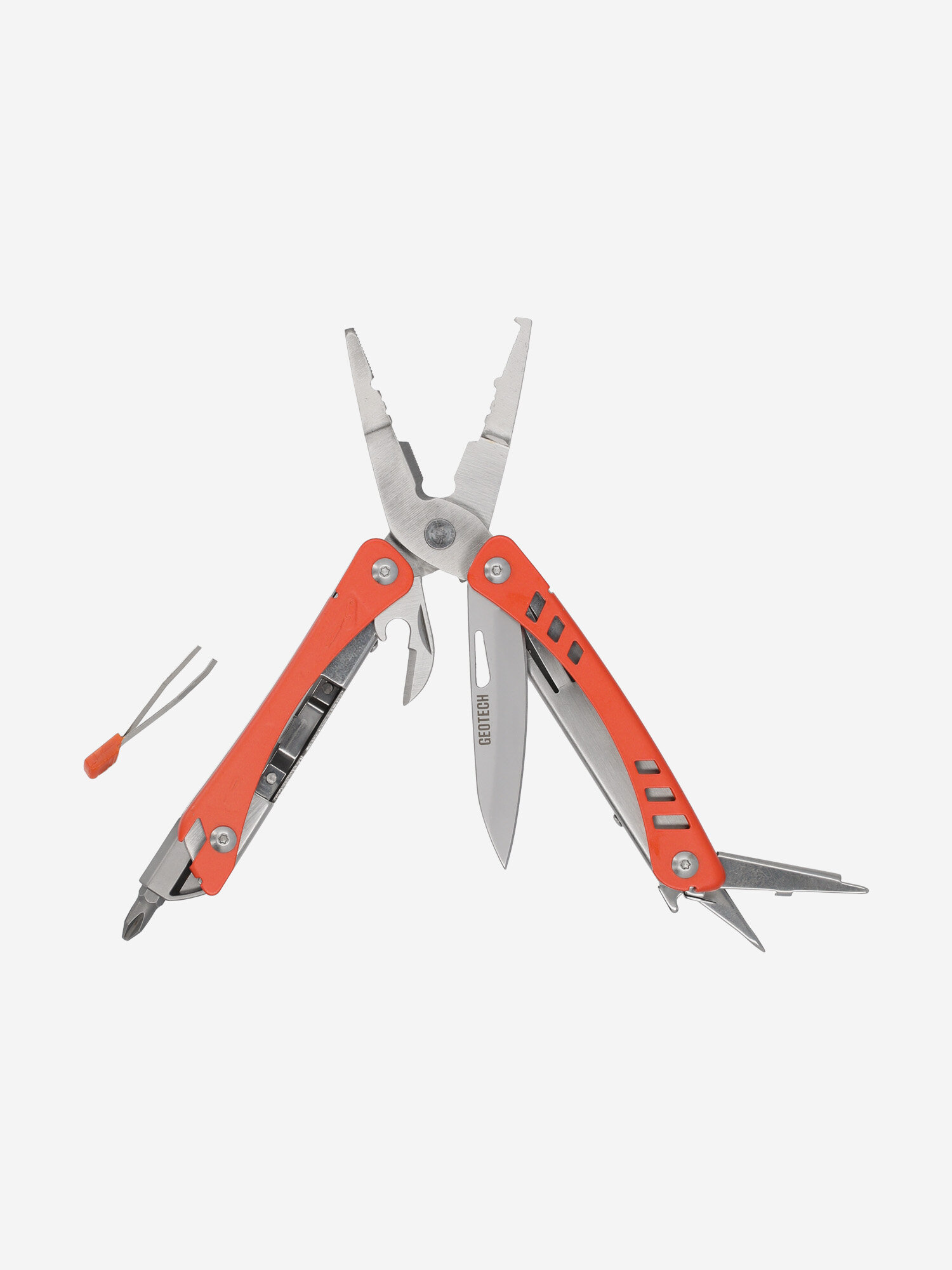 Мультитул Geotech идеально подойдет ценителям рыбалки, которые не могут жить без любимого занятия ни зимой, ни летом. Продуманный дизайн и большой набор инструментов делают его универсальным для использования в различных ситуациях. В комплект входят следующие предметы: зажим для заводных колец, ножницы для лески, шило, нож с длиной клинка 80 мм, консервный нож, плоская отвертка, крестообразная отвертка, щипцы, обжим для свинцовых грузил. Все инструменты изготовлены из нержавеющей стали.