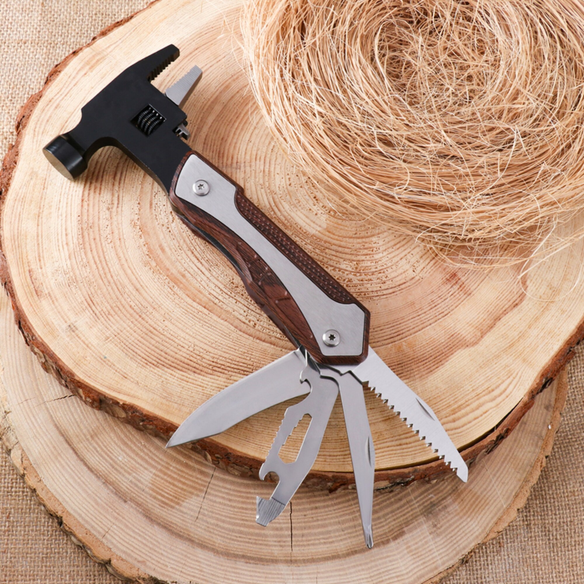 Купить Мультитул Сима-ленд 10153317, с молотком, разводным ключом, сталь, пластик, черный с доставкой по всей России.