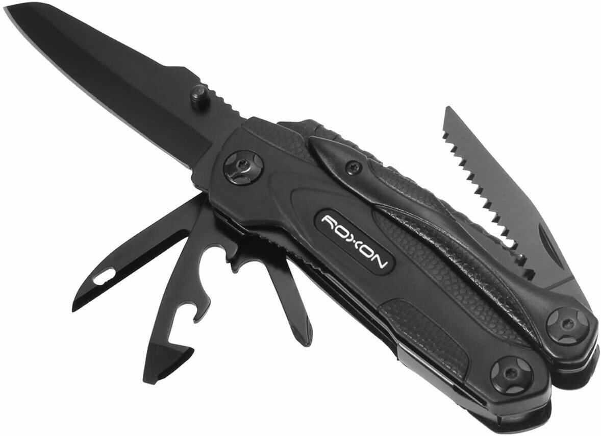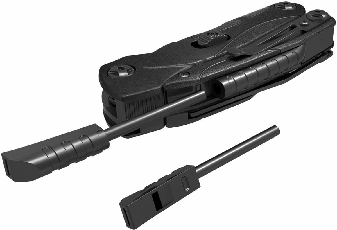 | Инструменты (функции) | консервный нож, кусачки, нож, ножницы, огниво, отвертка, открывалка для бутылок, пассатижи, пила, свисток, сменные биты, шило / кернер |