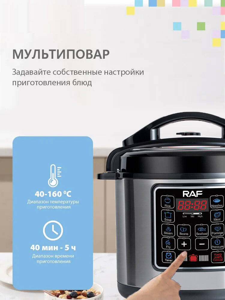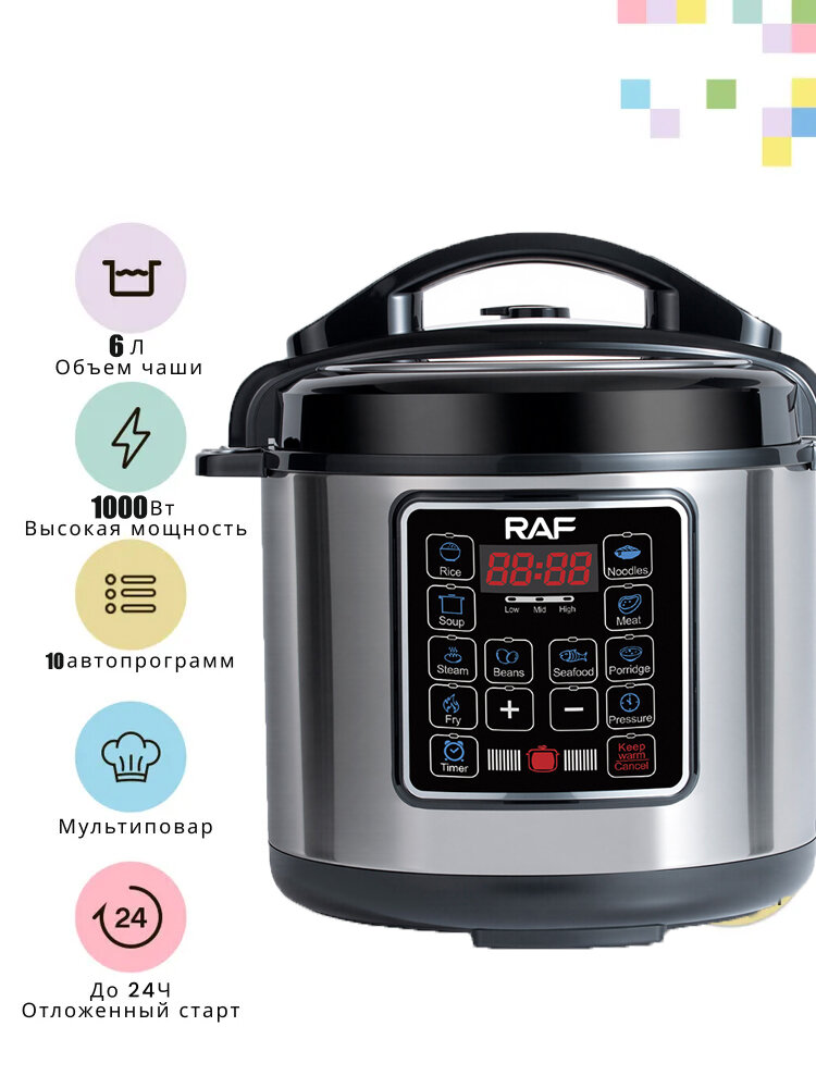 Купить Мультиварка 1000 Вт 6 литров — 10 программ, антипригарное покрытие, скороварка, для семьи с доставкой по всей России.