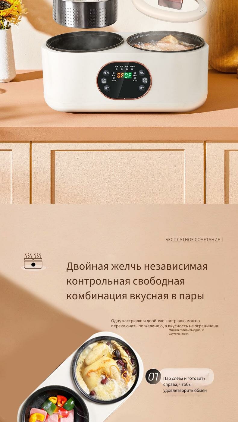 Купить Мультиварка Philips HD2168/03, антипригарная, двухварочная, с контейнером, 4л, белая с доставкой по всей России.