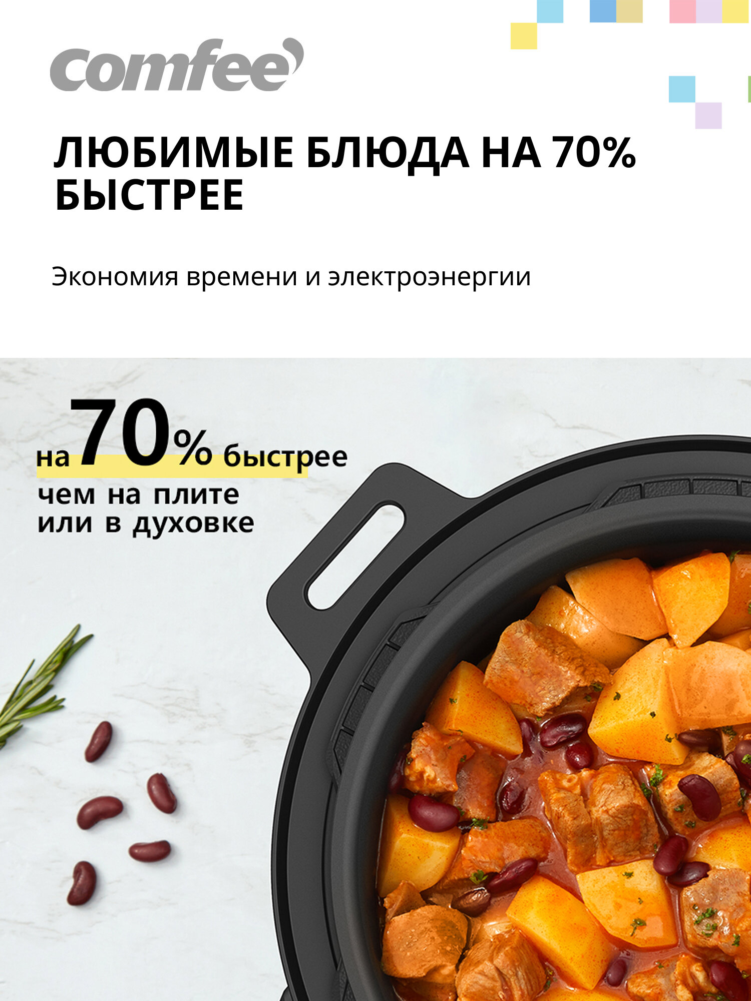 Мультиварка-скороварка Comfee CF-MC9508, 1000 Вт, чаша 6 л, антипригарное покрытие, 8 автопрограмм, отложенный старт 24 ч, серебристый/черный: сравнение цен, характеристики, фото, актуальное наличие и цены.
