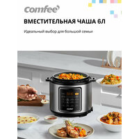 Купить Мультиварка-скороварка Comfee CF-MC9508, 1000 Вт, чаша 6 л, антипригарное покрытие, 8 автопрограмм, отложенный старт 24 ч, серебристый/черный с доставкой по всей России.