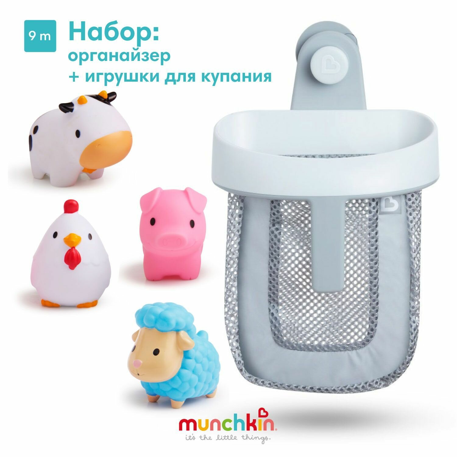 Купить Munchkin набор органайзер-сетка для игрушек в ванну и игрушки для ванной брызгалки Ферма 4 шт, с 9 мес с доставкой по всей России.