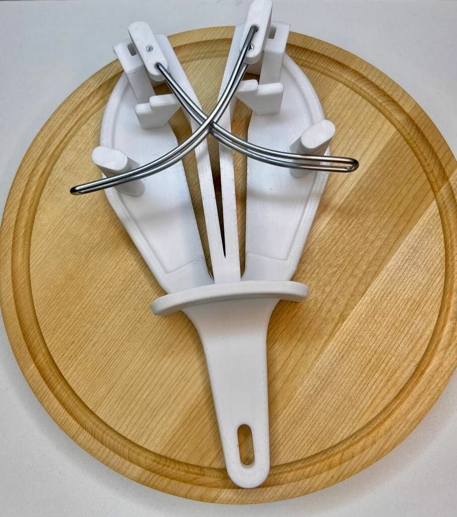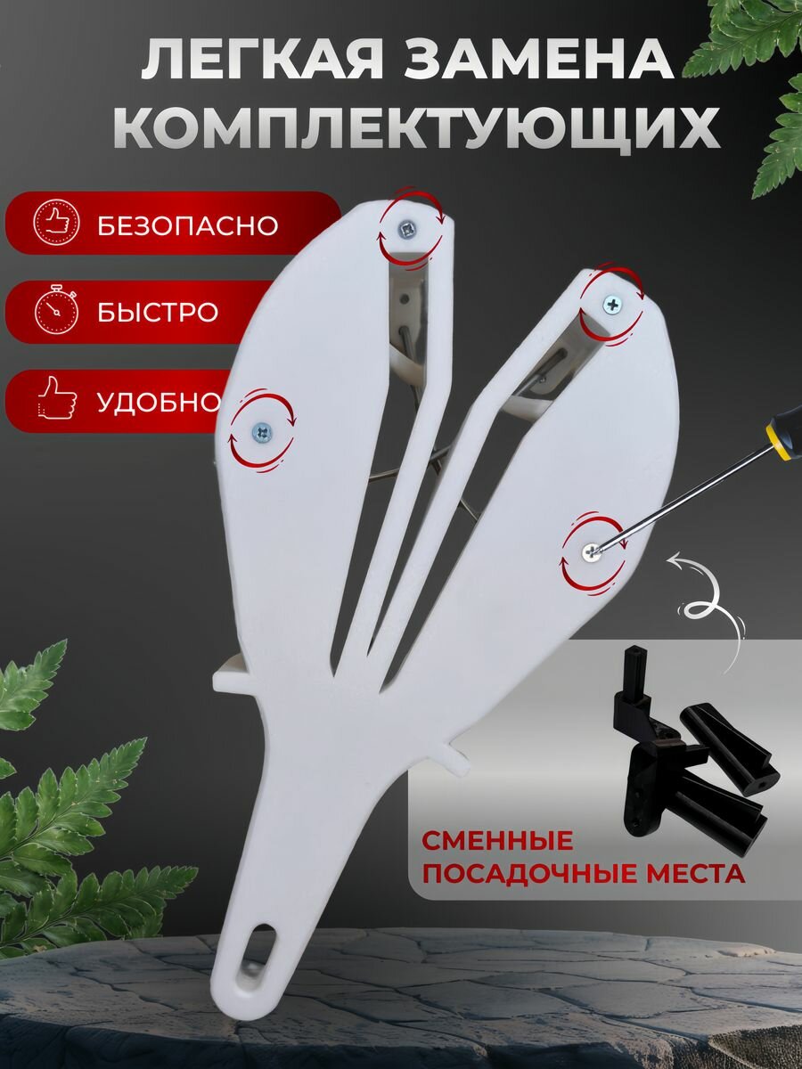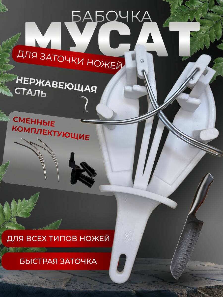 Заточное устройство мусат бабочка предназначено для быстрой правки кромки лезвия ножей в условиях промышленных предприятий и магазинов. Правка кромки лезвия необходима при использовании профессиональных ножей, особенно при покупке новых ножей. Если вы замечаете, что нож стал хуже резать, это не значит что он требует за заточки. Так как с завода ножи поставляются с идеально ровной кромкой - это обеспечивает максимально эффективный рез, но в процессе работы допускается деформация кромки, что легко исправляется мусатом или данным устройством. При этом с ножей не снимается металл, что значительно продлевает срок службы. Возможно использование в домашних условиях, также вместо мусата, устройство компактное удобное и эргономичное, ему найдется место на любой кухне. Заменяет функцию мусата, но не полноценной заточки абразивом. Устройство очень просто в использовании. Автоматически обеспечивает правильный угол правки, поэтому не требует специальных навыков при использовании. Сменные направляющие всегда доступны для заказа. Особенности точилки: