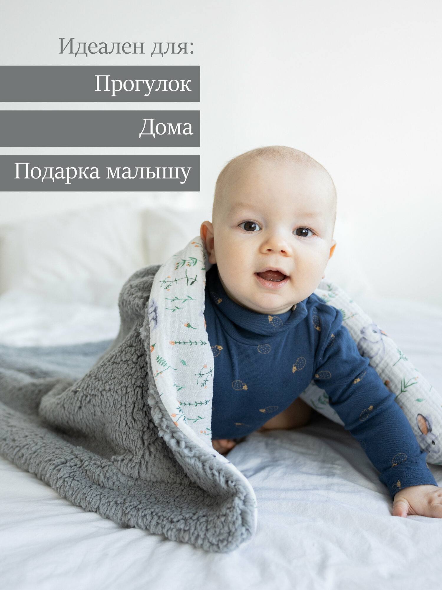 Купить Муслиновое плед одеяло теплое с мехом / плед для новорожденных с доставкой по всей России.