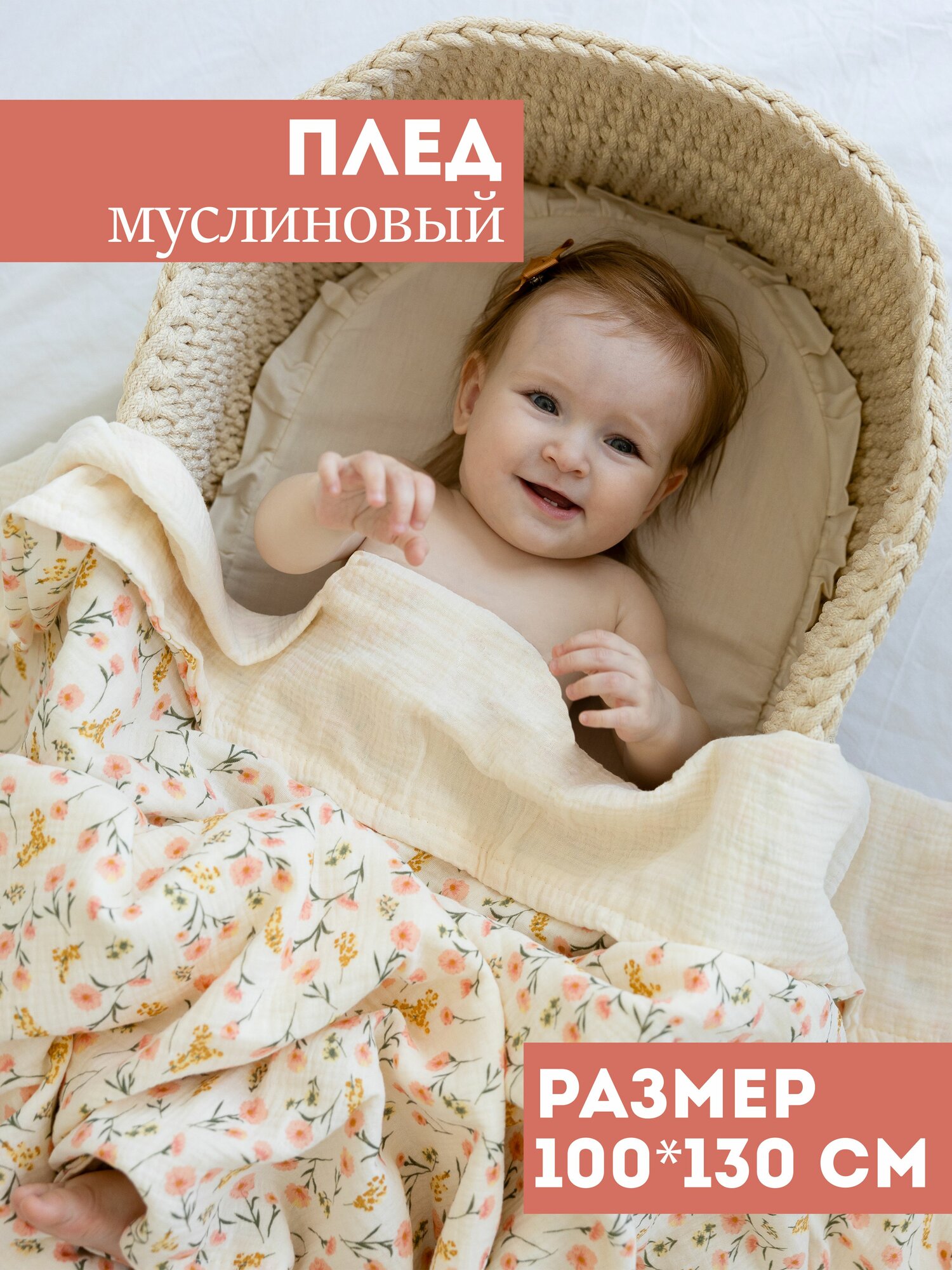 Купить Муслиновый плед для малыша 100*130 см / Плед из муслина для новорожденных / детское одеяло полотенце 4х слойный с доставкой по всей России.