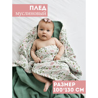 Размер: 100×130 см – идеальный для укрывания в кроватке, коляске или автокресле. Материал: Натуральный муслин (100% хлопок), который безопасен для чувствительной кожи младенца и гипоаллергенен. Многофункциональность: