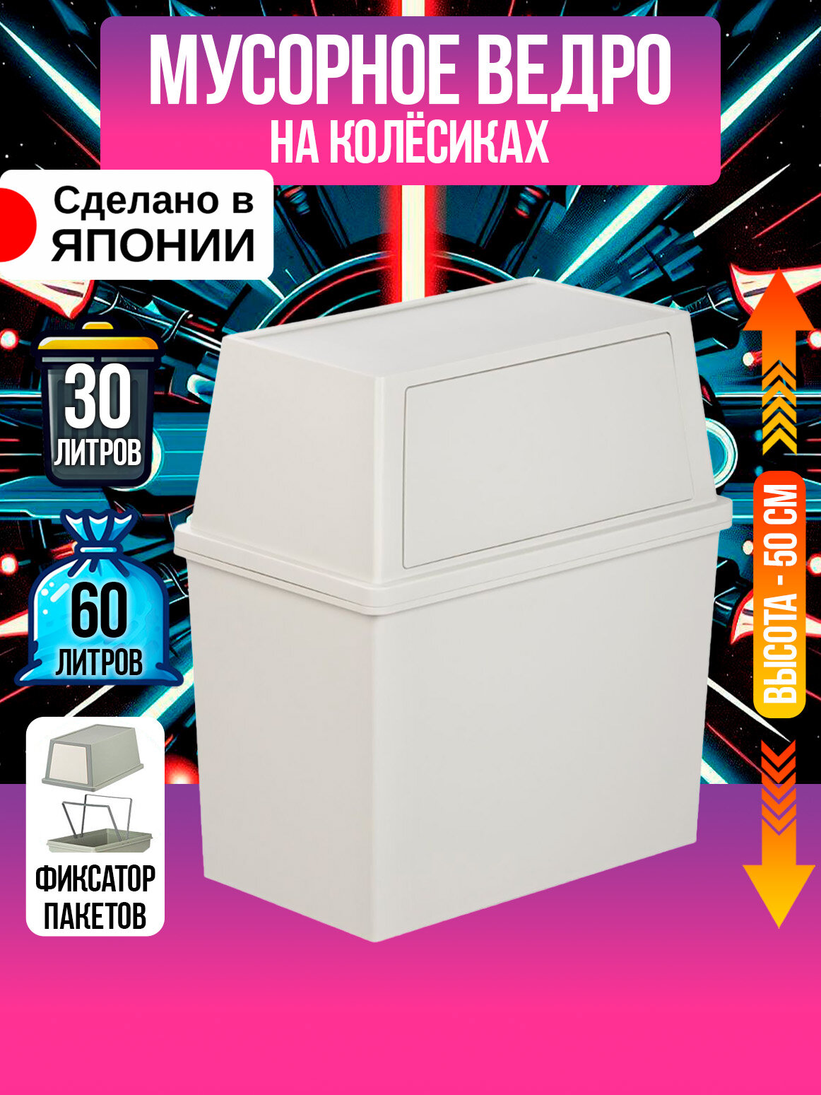 Торговая марка Heiwa представляет Вашему вниманию мусорное ведро. Модель выполнена из пищевого пластика – полипропилена, произведена и экспортирована из Японии. Безопасность товаров бренда подтверждена международными сертификатами качества. Модель не теряет своей прочности при больших перепадах температур и постоянной влажности. Благодаря своему строгому и минималистичному дизайну это ведро отлично подойдет для офиса, а также сможет вписаться в современный домашний интерьер. Габариты модели в формате Длина х Ширина х Высота составляют 45х27,5х50 см, а объем – 30 л. Ведро оснащено держателями для пакетов и роликами, которые поспособствуют мобильности корзины. Простота, практичность и внимание к мелочам, пожалуй, три основных параметра так ярко характеризующих японскую продукцию. Выбирая товары ТМ Heiwa - Вы делаете ставку на качество и долговечность.
