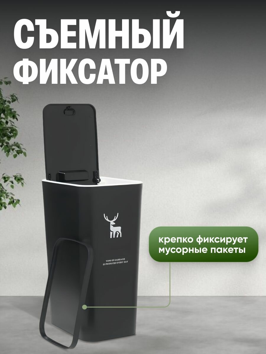 Функциональная мусорка с крышкой предотвращает распространение неприятных запахов, делая пространство более комфортным. Кухонное ведерко выполнено из прочного пластика, что обеспечивает его долговечность. Отлично подойдет в комнату, для мусора, в прихожую или офис. Бак для мусора отличается практичностью и современным дизайном, подходящим для любого пространства. Компактные размеры позволяют разместить урну в удобном месте, сохраняя эстетику помещения.