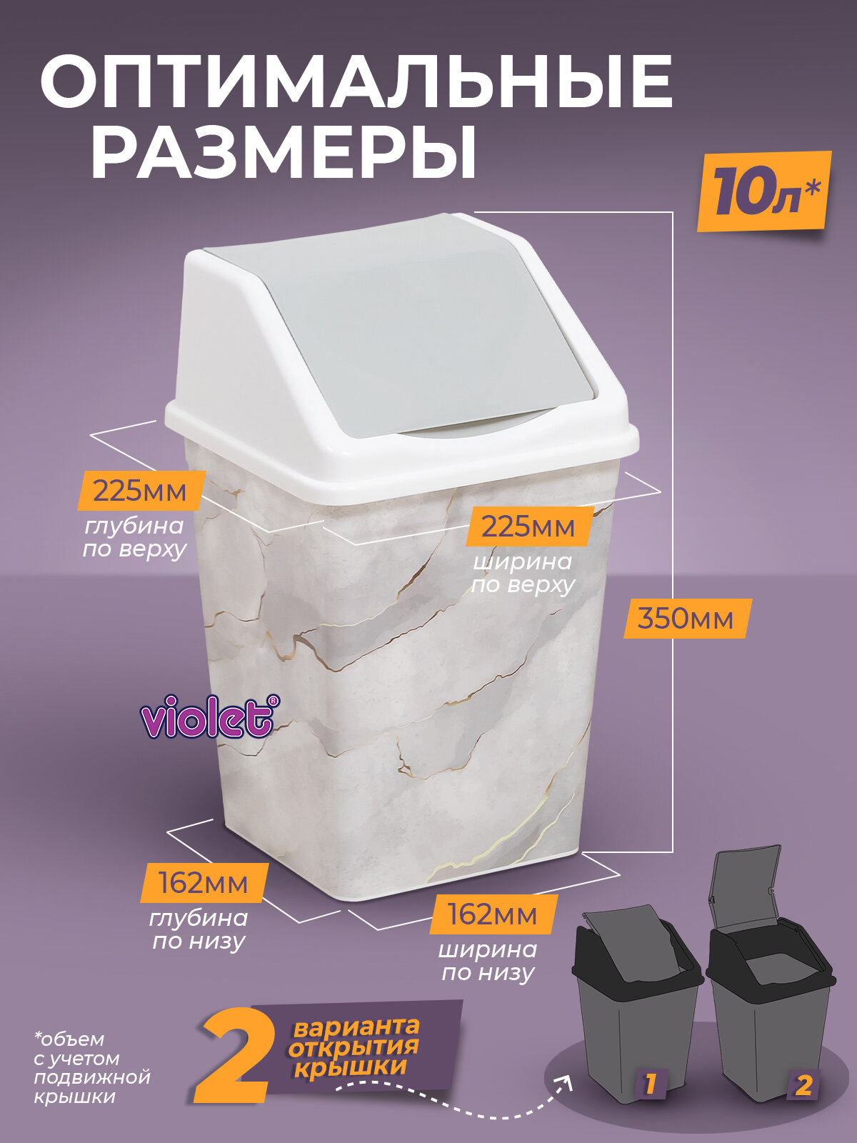 Мусорное ведро для кухни 10л с крышкой квадратное, цвет белый мрамор / контейнер для мусора для туалета: сравнение цен, характеристики, фото, актуальное наличие и цены.