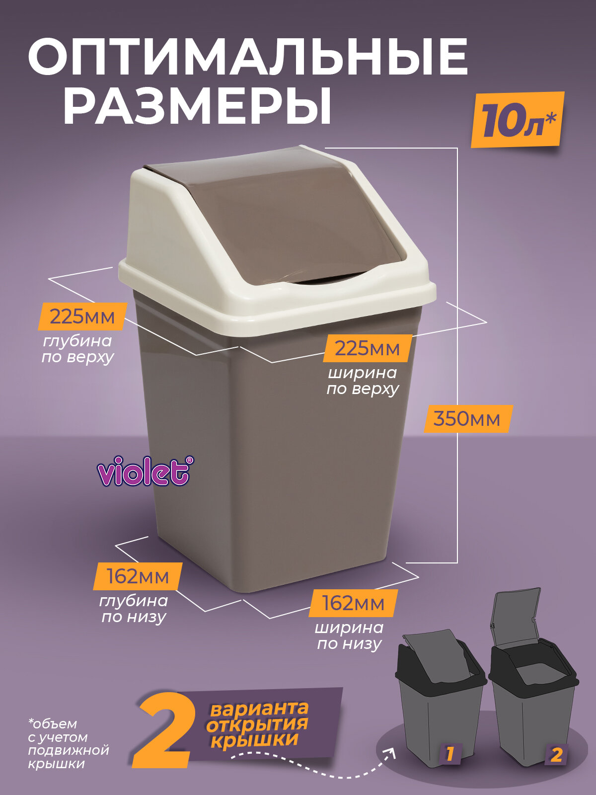 Мусорное ведро для кухни 10л с крышкой квадратное, цвет шоколадный / контейнер для мусора для туалета: сравнение цен, характеристики, фото, актуальное наличие и цены.
