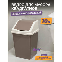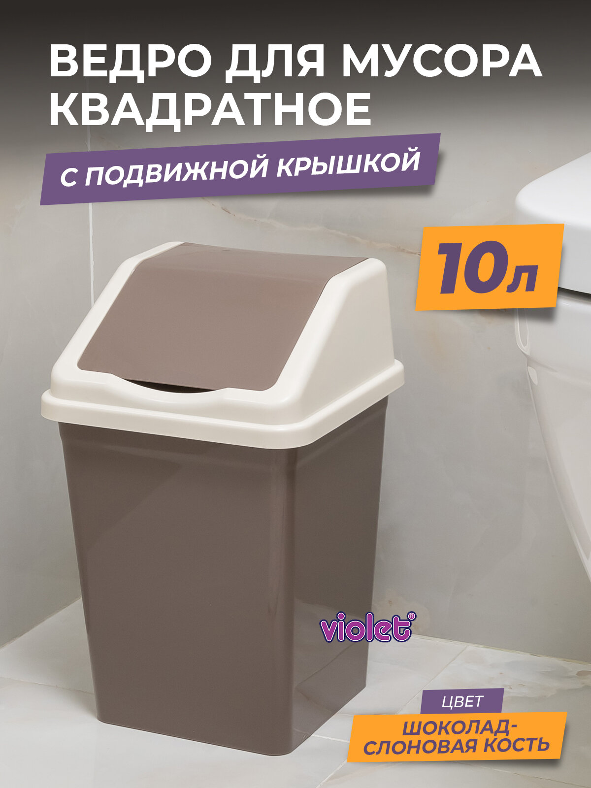 Купить Мусорное ведро для кухни 10л с крышкой квадратное, цвет шоколадный / контейнер для мусора для туалета с доставкой по всей России.