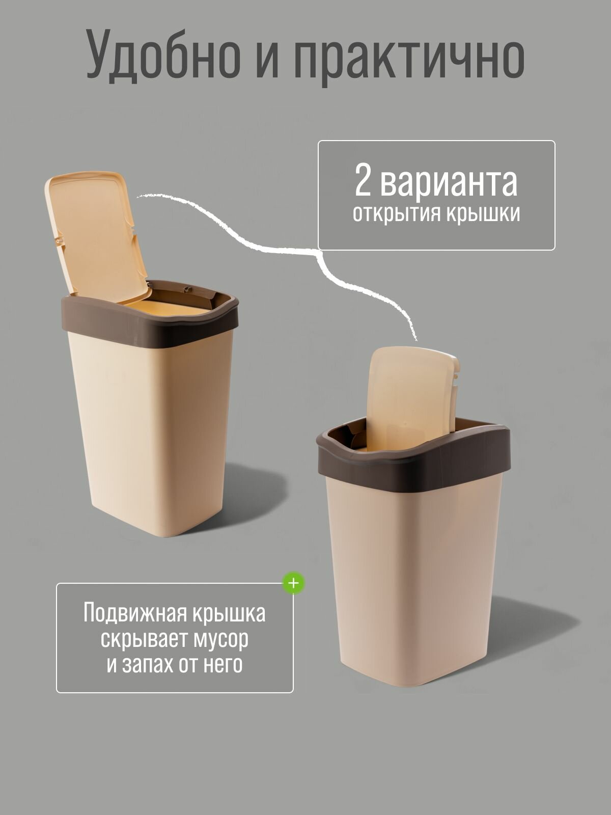 Мусорное ведро для кухни 20л с подвижной крышкой Tandem, цвет слоновая кость / контейнер для мусора для туалета: сравнение цен, характеристики, фото, актуальное наличие и цены.