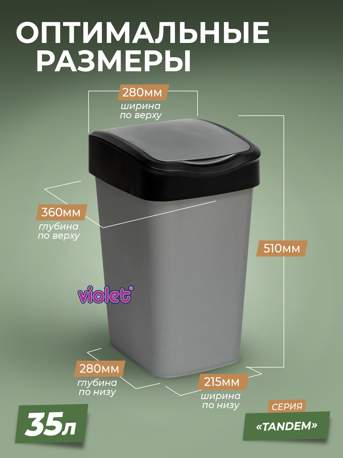 Мусорное ведро для кухни 35л с крышкой Tandem, цвет серый металлик / контейнер для мусора для туалета: сравнение цен, характеристики, фото, актуальное наличие и цены.