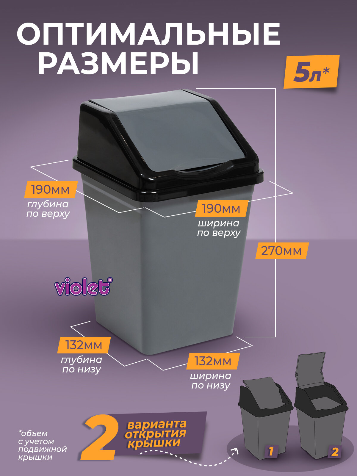 Мусорное ведро для кухни 5л с крышкой квадратное, цвет серо-черный / контейнер для мусора для туалета: сравнение цен, характеристики, фото, актуальное наличие и цены.