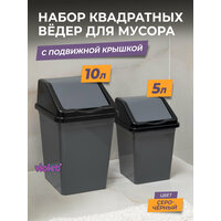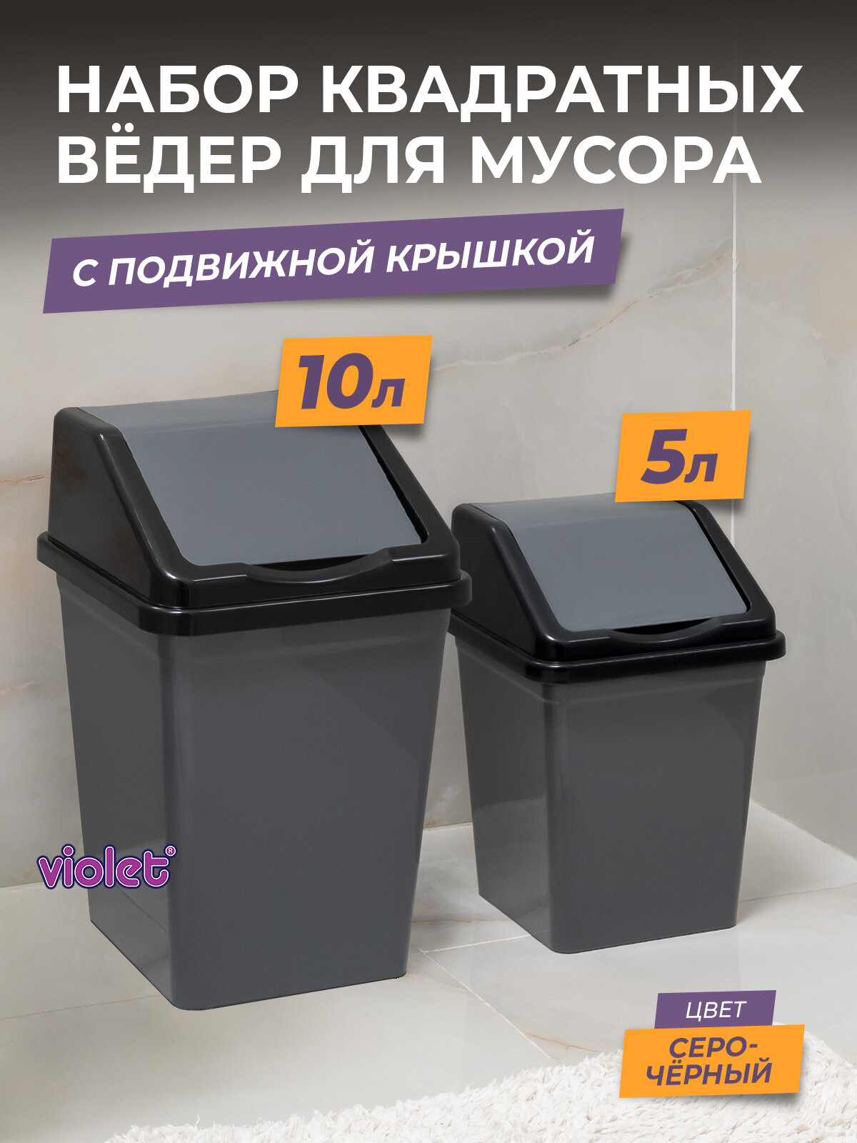 Мусорное ведро для кухни с крышкой квадратное, набор 2шт: 5л + 10л, цвет серый / контейнер для мусора для туалета: сравнение цен, характеристики, фото, актуальное наличие и цены.