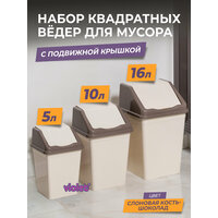 Мусорное ведро для кухни с крышкой квадратное, набор 3шт: 5л + 10л + 16л, цвет слоновая кость: сравнение цен, характеристики, фото, актуальное наличие и цены.