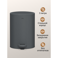 Мусорное ведро для туалета 3л с педалью, темно-серое, нержавеющая сталь: сравнение цен, характеристики, фото, актуальное наличие и цены.