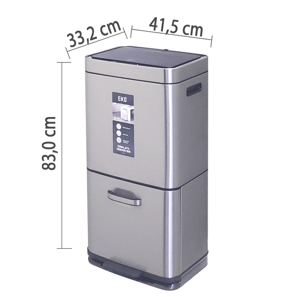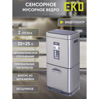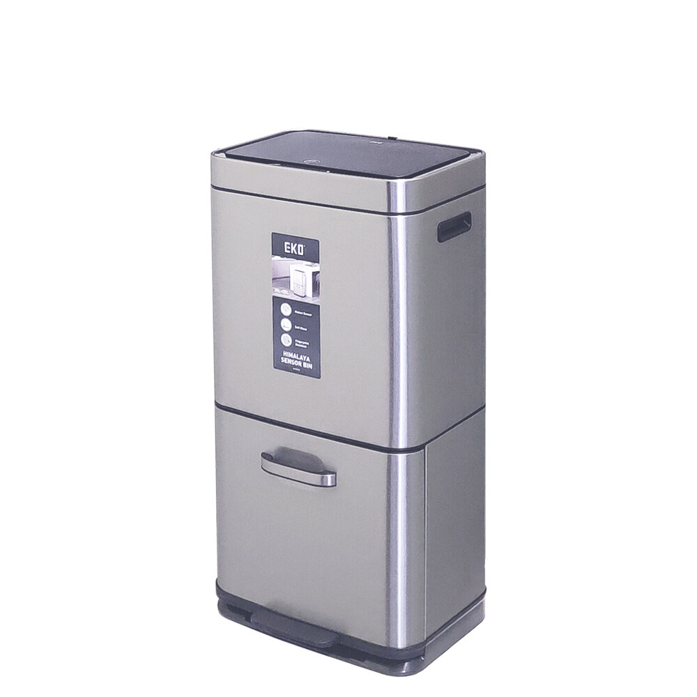 Сенсорное мусорное ведро EKO с двумя отсеками для раздельного сбора отходов модель EK9339X-GMT-35+25L 60 литров (35+25 литров) серии HIMALAYA SENSOR BIN с корпусом из благородной нержавеющей стали, с обновленной системой индикации и сенсорного управления создано для того, чтобы радовать глаз владельца и приумножать комфорт в помещении. Корпус модели EK9339X-GMT-35+25L защищен специальным покрытием, предотвращающим появление на корпусе жирных отпечатков пальцев, даже при активной эксплуатации оно сохраняет аккуратный и благородный внешний вид.