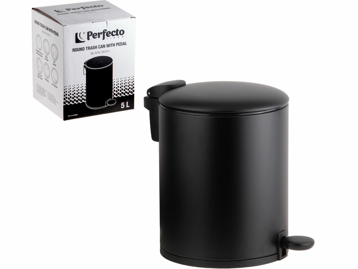 Купить Мусорное ведро PERFECTO LINEA Black Onyx 22-200205 с педалью и крышкой сталь, 5 л с доставкой по всей России.