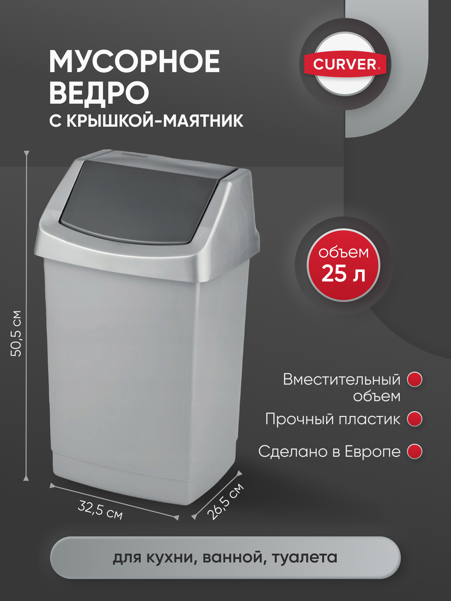 Купить Мусорное ведро с крышкой маятник для кухни ванной, дома и офиса Curver CLICK IT 25 литров, 4044 серый люкс с доставкой по всей России. Мусорное ведро с крышкой маятник для кухни ванной, дома и офиса Curver CLICK IT 25 литров, 4044 серый люкс: сравнение цен, характеристики, фото, актуальное наличие и цены.