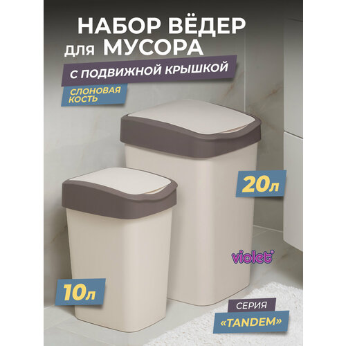 Купить Мусорное ведро с крышкой, набор Tandem 10л+ 20л, цвет слоновая кость / контейнер для мусора для туалета с доставкой по всей России.