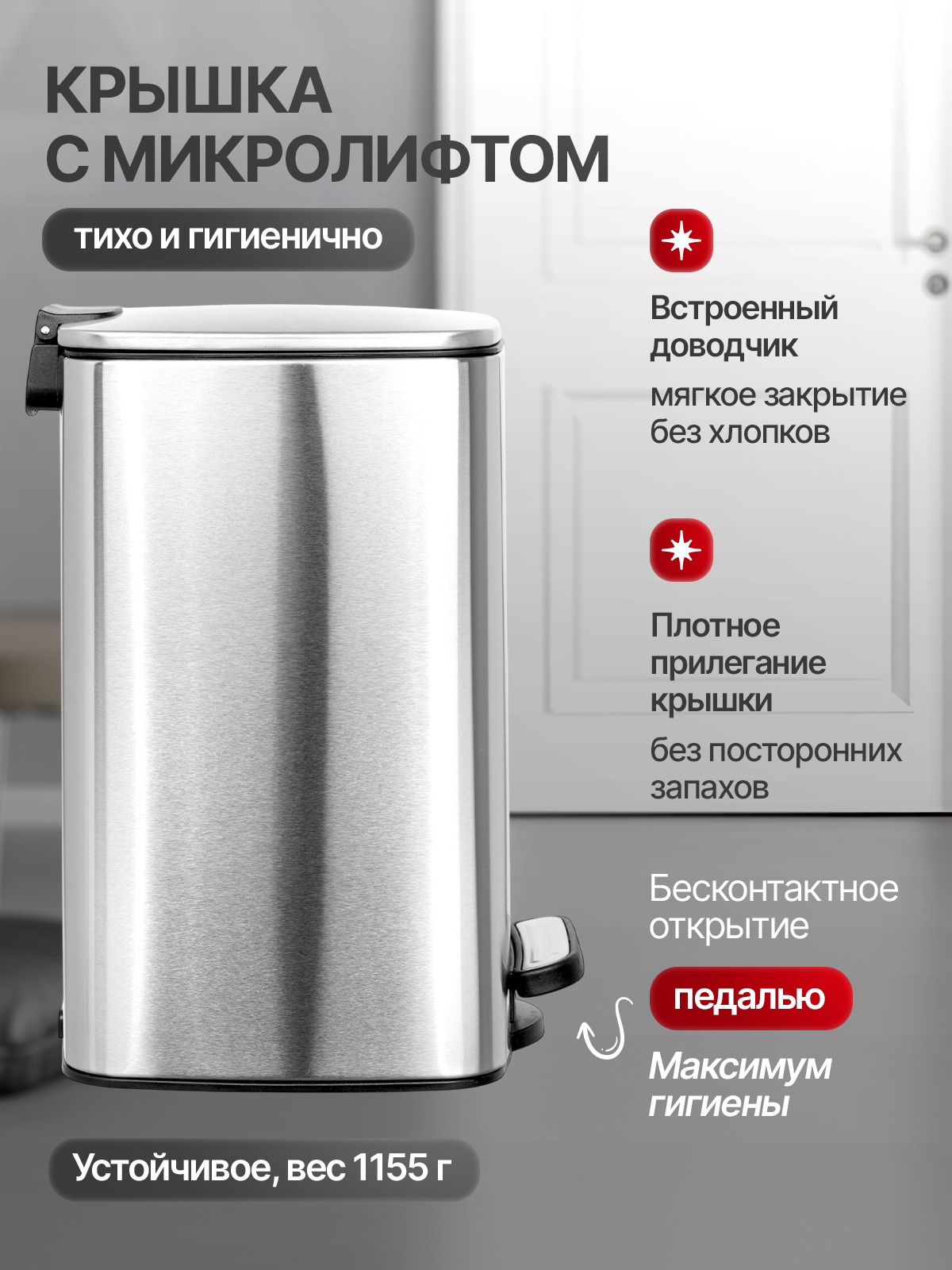 Купить Мусорное ведро с педалью на 8 литров из нержавеющей стали, с микролифтом и с внутренним контейнером , цвет матовый сатин с доставкой по всей России. Мусорное ведро с педалью на 8 литров из нержавеющей стали, с микролифтом и с внутренним контейнером , цвет матовый сатин: сравнение цен, характеристики, фото, актуальное наличие и цены.