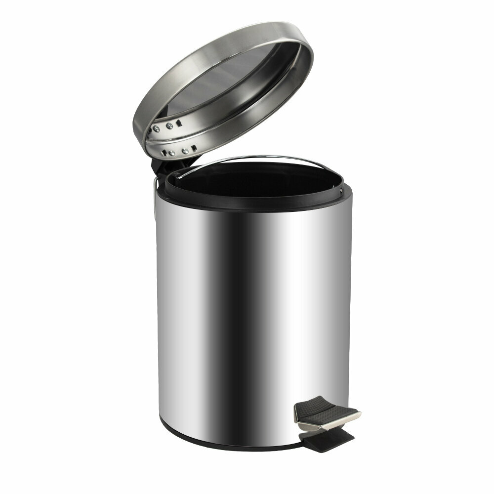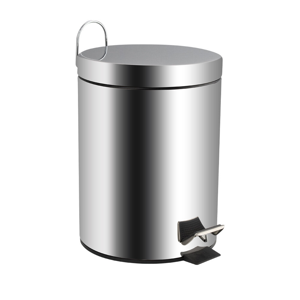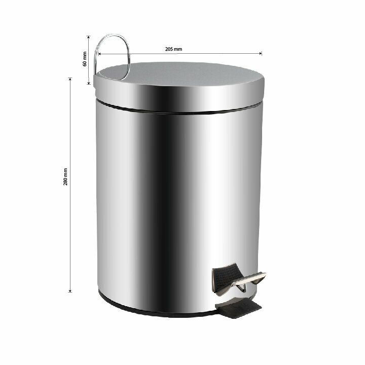 Круглое хромированное ведро с микролифтом для хранения мусора, с педалью и откидной крышкой, прекрасно подойдет для ванной комнаты, туалета или кухни и офиса. Ведро оснащено пластиковым гигиеническим контейнером с металлической ручкой для переноса и плавным механизмом поднятия - опускание крышки, при помощи нажатия на педаль. Объём ведра 5 литров. Отличное решение для утилизации мелкого бытового мусора. Наличие крышки обеспечивает защиту от неприятных запахов и распространения бактерий, а педальная система открывания позволяет не прикасаться к баку руками. Благодаря современному дизайну ведро впишется в интерьер любой кухни и ванной комнаты. Преимущества ведра для мусора с педалью: удобно устанавливается и перемещается на любое место; изготовлено из устойчивой к коррозии нержавеющей стали с хромированным покрытием; пользоваться изделием удобно и гигиенично благодаря педали в нижней части корпуса. Нескользящая пластиковая основа ведра предотвращает повреждение пола. Габаритные размеры: высота 280 мм, диаметр 205 мм. Вес - 1,100 кг, объём - 0,01528 м3.