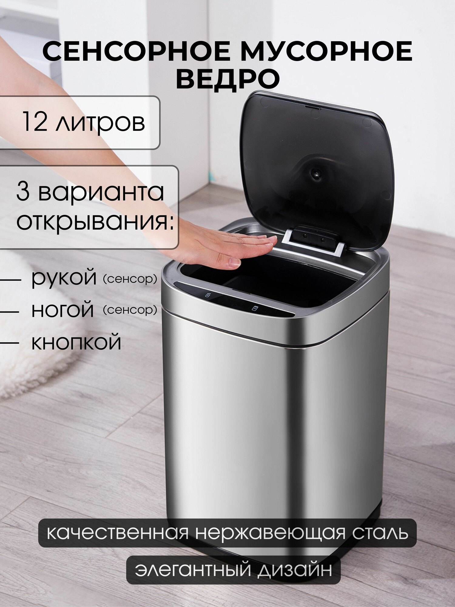 Мусорное ведро сенсорное PW-802, 12 литров, нержавеющая сталь: сравнение цен, характеристики, фото, актуальное наличие и цены.