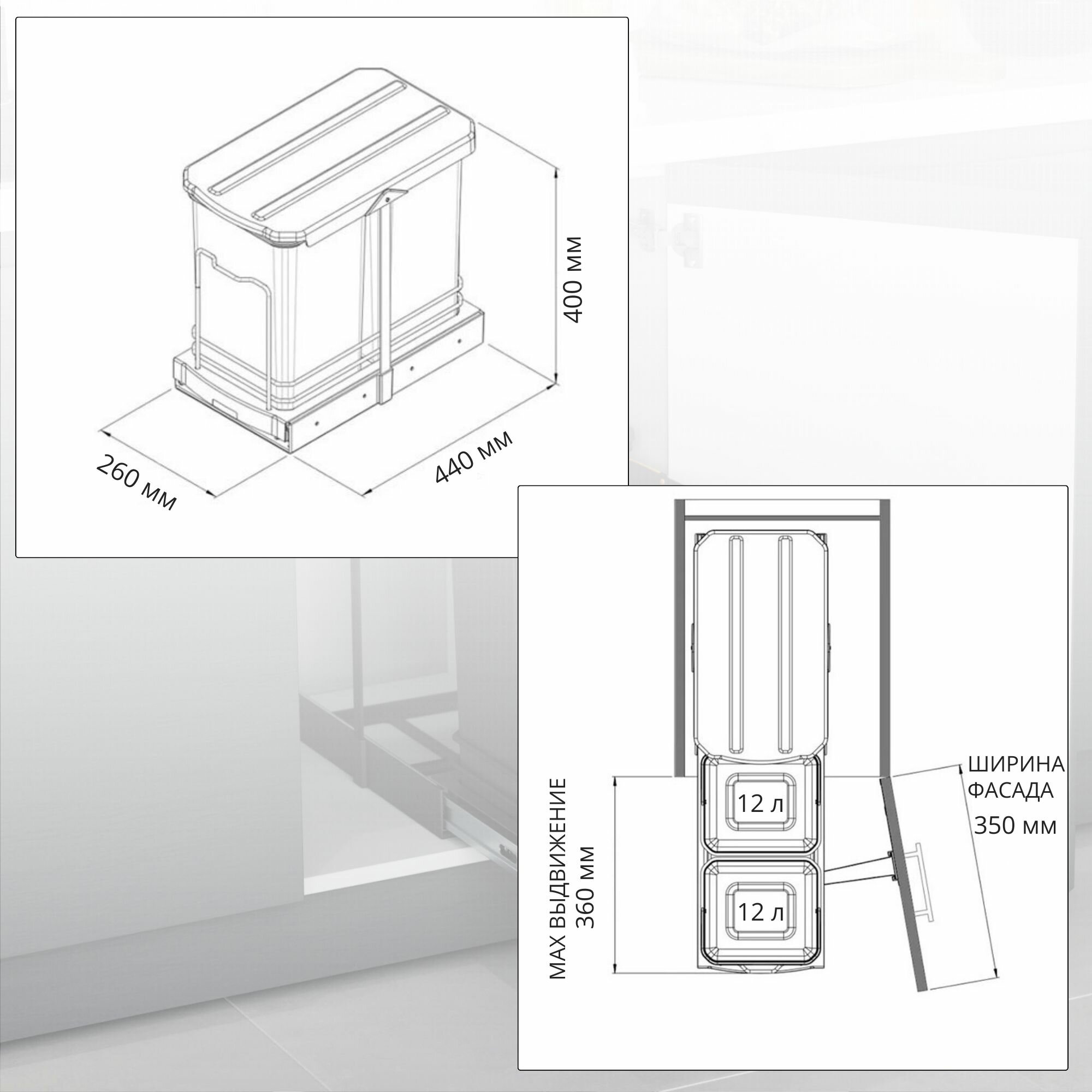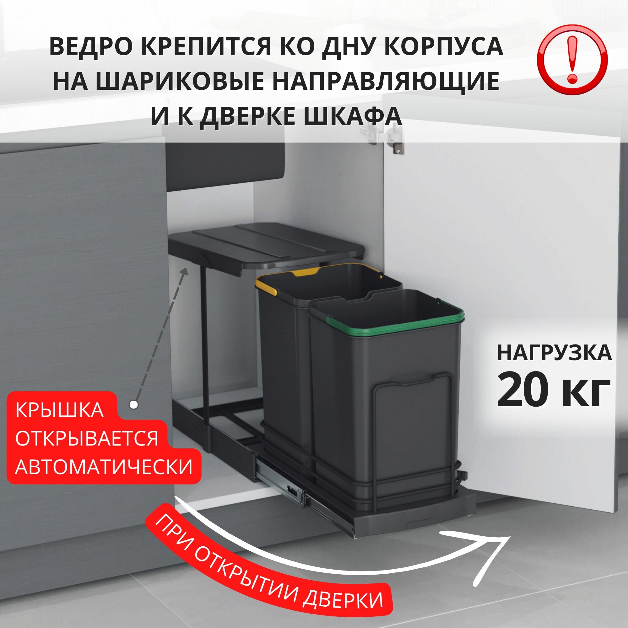 Купить Мусорное ведро Starax S-2392-A выдвижное, автоматическое открывание крышки, 2 ведра 12+12 литров, в базу 400 мм, антрацит с доставкой по всей России. Мусорное ведро Starax S-2392-A выдвижное, автоматическое открывание крышки, 2 ведра 12+12 литров, в базу 400 мм, антрацит: сравнение цен, характеристики, фото, актуальное наличие и цены.