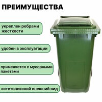 Мусорный бак на 240 литров служит для комплексного решения задач по сбору, хранению и перевозке разнообразных бытовых отходов, включая стекло, пластик и бумагу.