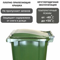 Мусорный бак на 240 литров идеально подходит для использования на даче, в частном доме или на пункте сбора мусора.