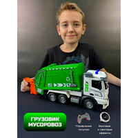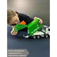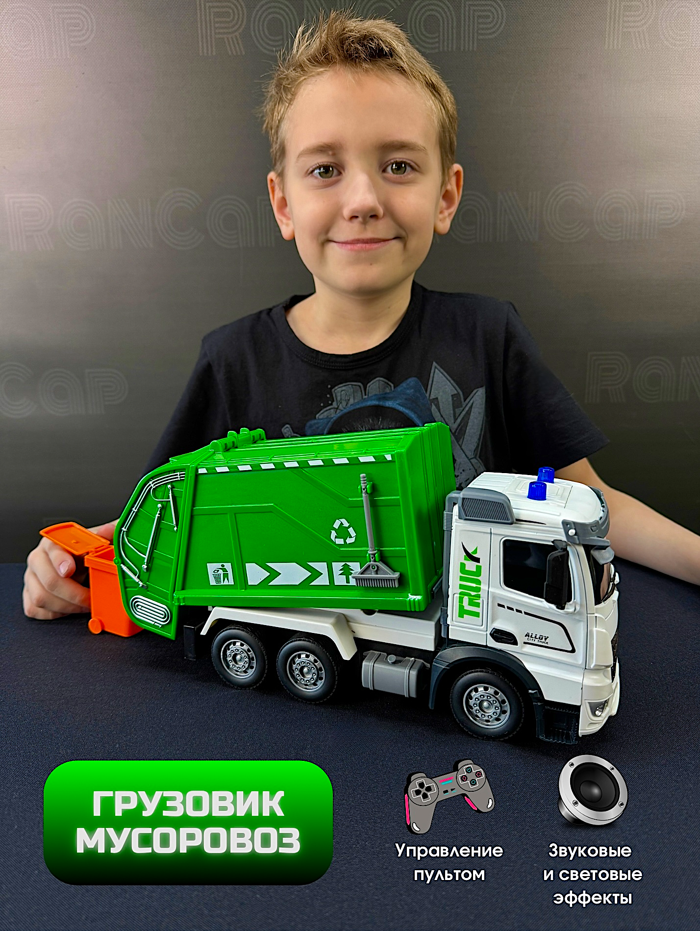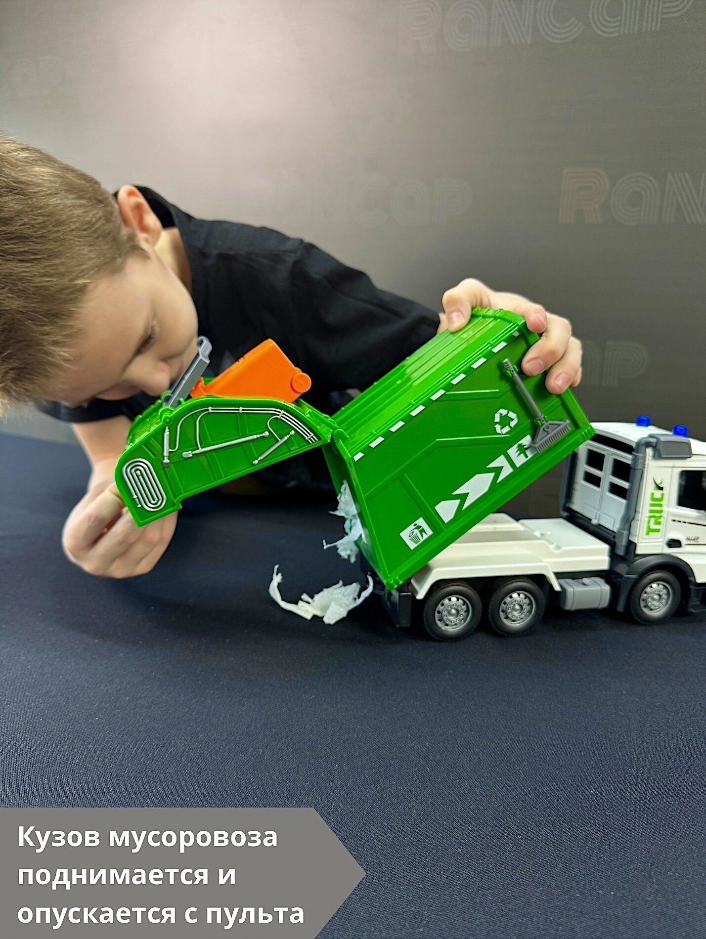 Большой радиоуправляемый мусоровоз — универсальная игрушка спецтехника для мальчиков, которая подарит увлекательные игры и поможет почувствовать себя юным строителем и водителем дорожной техники. Эта модель — масштаб 1:12, настоящий большой игрушечный грузовик с прицепом, идеально впишется в коллекцию детской строительной техники, набор машинок спецтехника или набор машинок строительная техника для песочницы.